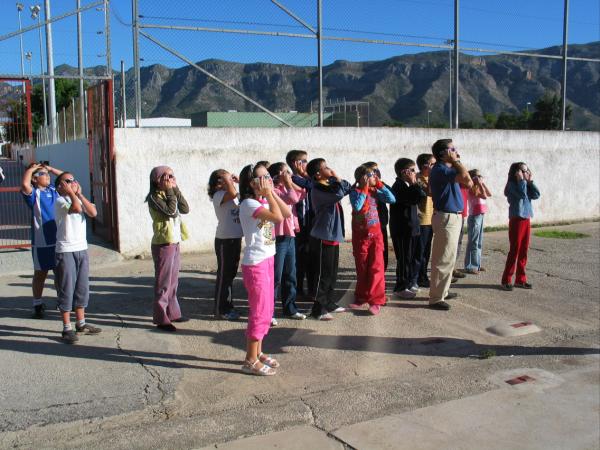 Observación del eclipse desde el Colegio Público Jaume II el Just de Benifairó.
