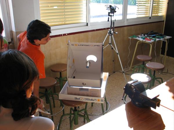 | En otras aulas utilizaban el Solarescope para seguir la evolución del eclipse. |