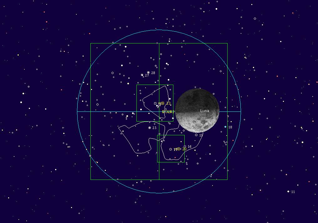 la Luna. La reaparición se produce a las 20h 18m Ocultación muy