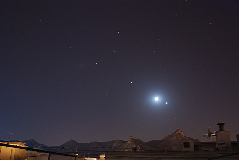 las 23h: La Luna a 0.8º de las Pléyades