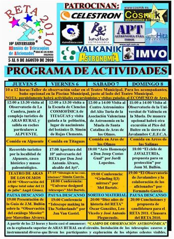 -- 4 de Febrero, jueves, 17:30 habrá una observación en el colegio Santa Ana de Villalonga. Esta observación estaba programada para el 21 de diciembre, pero no se pudo realizar por problemas con el tiempo, el agua, el viento, etc… El que quiera ayudar, puede ir a Villalonga. El colegio está en el camino de subida a la Llacuna, pero desviandose (para ir al polideportivo, en lugar de seguir subiendo), ya que el colegio se encuentra al lado mismo.