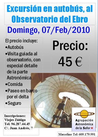 -- 7 de Febrero a las 7h, Domingo. Excursión en autobús al Observatorio del Ebro.