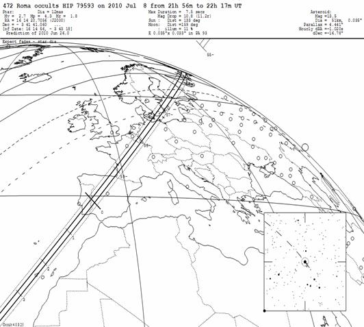 Problema 137: En la ocultación asteroidal del día 3 de Enero,¿sabéis cuanto mide el asteroide 1671 Chaika? El diámetro real es de 12km y el aparente es de solo 12 milisegundos de arco, de ahí que la franja de ocultación sea tan estrecha.