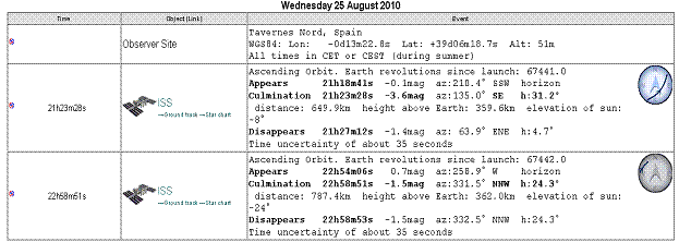 -- 21 de Febrero: La ISS se puede ver fácilmente a primera hora de la mañana. Entre las 7h 9m y las 7h 15m cruzará el cielo alcanzando una magnitud de -3. El Sol estará 7 grados por debajo del horizonte y por tanto en pleno crepúsculo náutico. Ideal para observarla sino fuera por que hay que madrugar ¡un domingo!