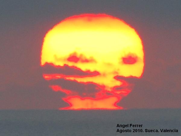 - 8h 25m. Sale el Sol por el horizonte. Eclipsado en un 35%.