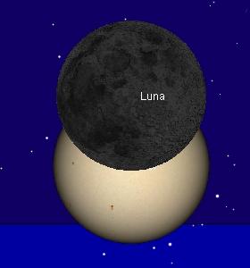 - 7h 45m Sucede el primer contacto de la Luna con el Sol. El Sol se encuentra por debajo del horizonte.