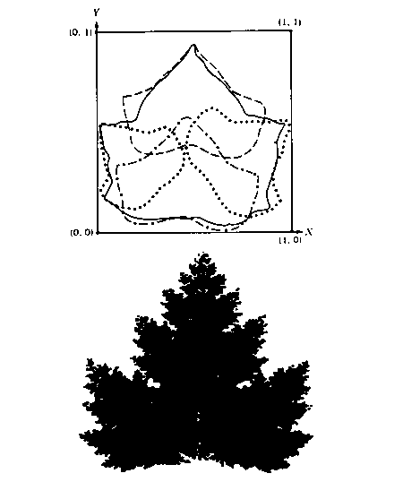 Fig. 16: Una imagen real puede ser generada mediante fractales a partir de una sucesión de funciones iteradas, tomada de El turista matemático pág 153. |