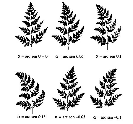 Fig. 17: El ordenador permite simular el movimiento de las imágenes a partir de transformaciones del sistema de funciones iteradas que definen el fractal que genera la imagen. Imagen tomada de Estructuras fractales, pág. 200 y 206. |