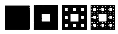 Fig. 6: Diferentes ejemplos de procesos de separación de fronteras, de ramificación y de porosidad, tomada de Estructuras fractales, pág. 3. |