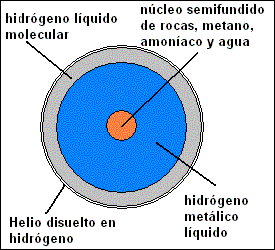 2: el interior del planeta Júpiter, con sus diferentes capas de hidrógeno y helio. |
