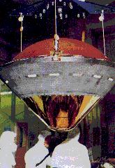 en diciembre de 1995. La cubierta protectora (abajo) quedó prácticamente destruida en su entrada al planeta. (NASA) |