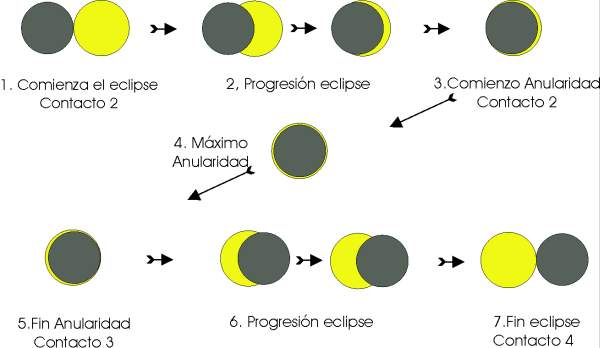 total de la última y comienzo de la totalidad. En los eclipses anulares