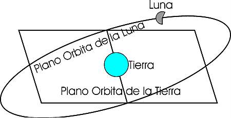 la órbita de la Luna está inclinada (ojo: inclinación "media")