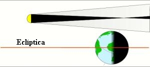 | "Eclipse" visto desde el Sol No esta a escala. Desde el Sol la Tierra tiene un diametro de 16". | Eclipse visto