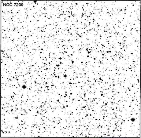 Abandonando ya esta peculiar galaxia, nos dirigiremos al cúmulo abierto NGC 7209, fácilmente observable mediante instrumentos pequeños. Para llegar a su posición podemos partir, de nuevo, desde la estrella 11 Laceitaq.,_ De. aquí nos dirigiremos a la 5 Lac, después a la 2 Lac y, finalmente, a la estrella HT Lac, situada justo al norte de este cúmulo abierto.