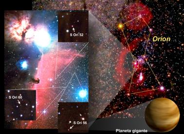 Observando esta zona, el grupo de astrofísicos encontró unos dieciocho objetos candidatos que cumplen las espectativas: rojos y débiles. ¿Cómo no confundirlos con estrellas frías, enanas marrones o incluso galaxias muy lejanas? Tres de ellos (S Ori 52, S Ori 56, and S Ori 60) han sido observados con los telescopios Keck I y II en Hawaii para obtener su espectro y así determinar la composición, confirmando sin duda alguna que se trata de objetos entre 5 y 15 masas jovianas: no son enanas marrones y mucho menos estrellas enanas. La temperatura superficial se calcula en unos 1800° C.