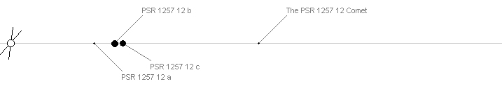 | Representacion de la situación de los planetas del Pulsar B2157+12, que cumplen casi a la perfeccion la ley de Titius |