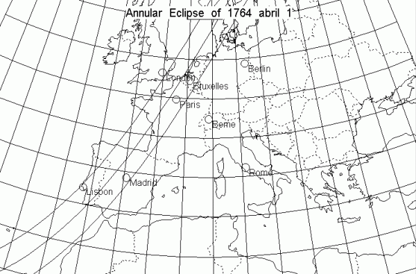 Eclipse Anular de 1764 Mapa calculado informáticamente con el programa